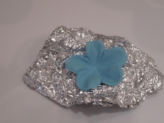 Så må blomsten tørke for å holde fasongen. Hvis du har dette settet lager du en kopp som blomsten kan ligge oppi. Du kan også ordne en sånn kopp selv av alumiumsfolie eller du kan bruke en blomster former