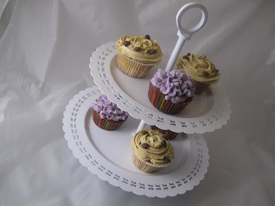 Pynt med sommerfugl, blomster eller annen pynt i marsipan. Strødde også litt spiselig glitter på de, og litt sølv kakestrø:-)