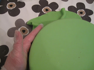 Skjær bort fondanten kant i kant med formen. Bruk en plastkniv eller baksiden på en kniv så du ikke skjærer i stykker formen…
