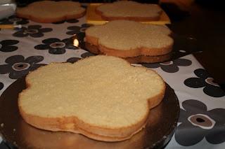 Etter den er avkjølt deler jeg den i 4 deler ( 3 lag fyll)