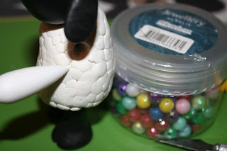 Skjær bort den overflødige marsipanen. Viktig å være litt nøye når man skjærer inntil kaken nederst, viktig med en flott finish der