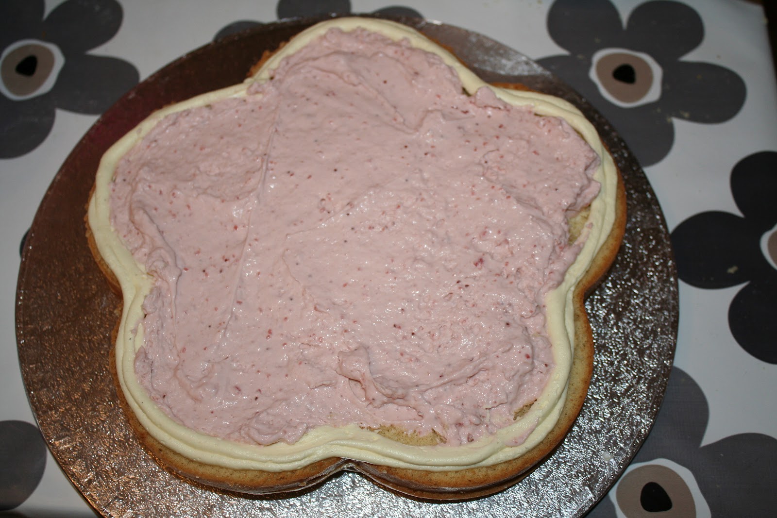 Her kommer noen bilder om hvordan jeg fylte og trekte denne kaken 🙂