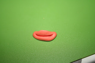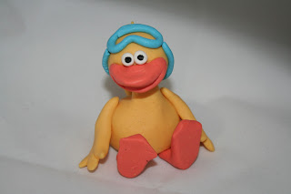 Trill ut en blå pølse med marsipan og form som noen svømmebriller og sett på hodet hans. Jeg limte også på et par hårtuster…