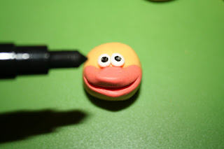 Lim på to hvite kuler til øyne. Jeg brukte en svart spiselig tusj til det svarte i øynene