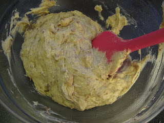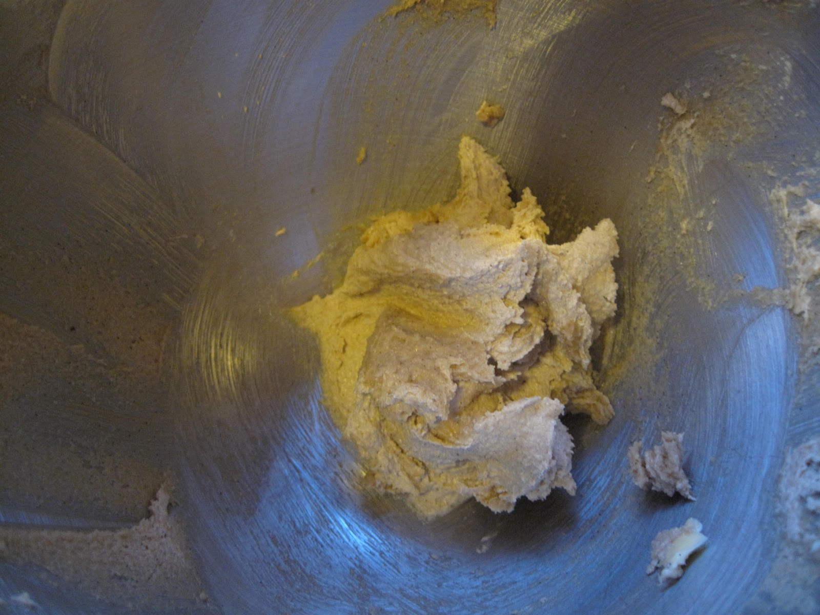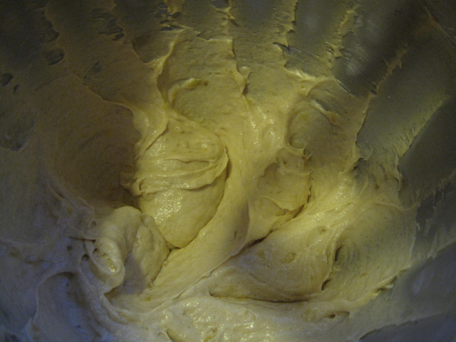 Tilsett det tørre og det våte vekselsvis, start og avslutt med det tørre. Del så røren i 2, ha ene halvparten over i en bolle