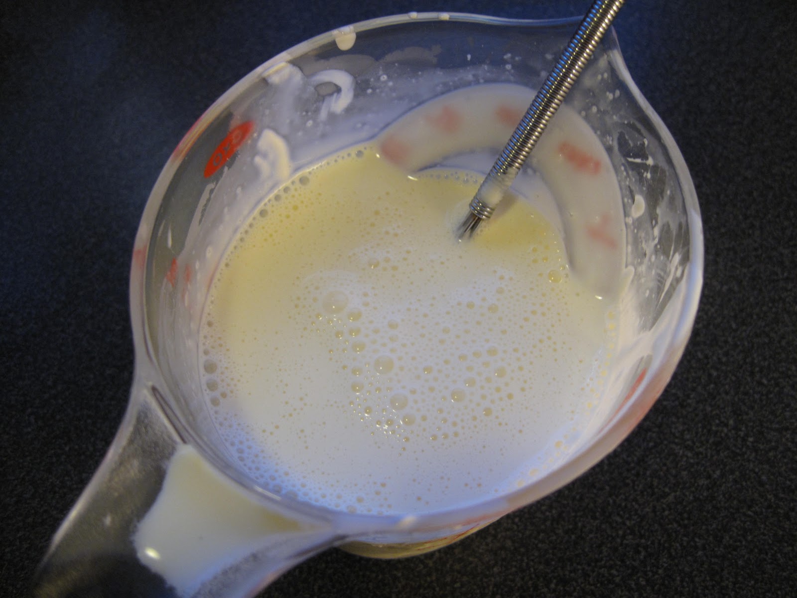 Ha rømme og fløte i et dl mål og pisk dette lett sammen