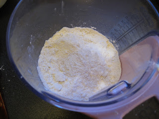 Vei opp mel og tilsett bakepulver, natron og vaniljesukker. Rør sammen og sikt dette 2 ganger