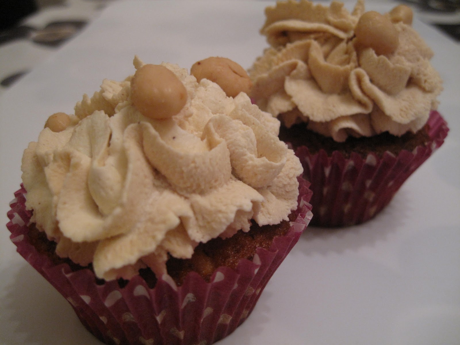 Sprøyt den ut på cupcaksene 🙂 Pynt med peanøtter