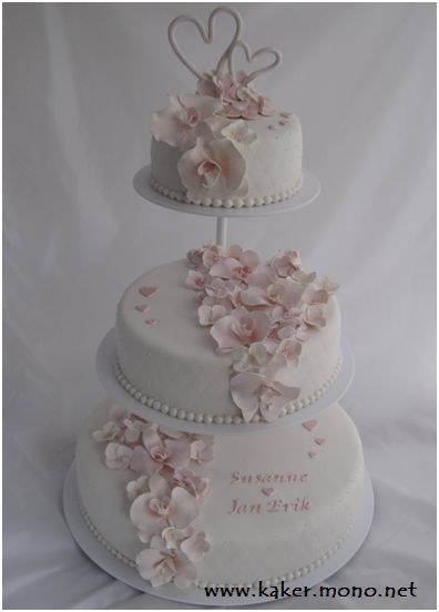 Velkommen til Hanne`s kaker [ cakes by Hanne ] 🙂 Håper du har hatt en fin helg! Jeg laget en bryllupskake til noen vi kjenner og her kommer det noen bilder av den…