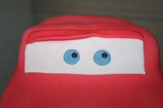 Frontlys lages med orange, grå og hvit fondant. Satte også på baklys, men da brukte jeg bare grå og hvit
