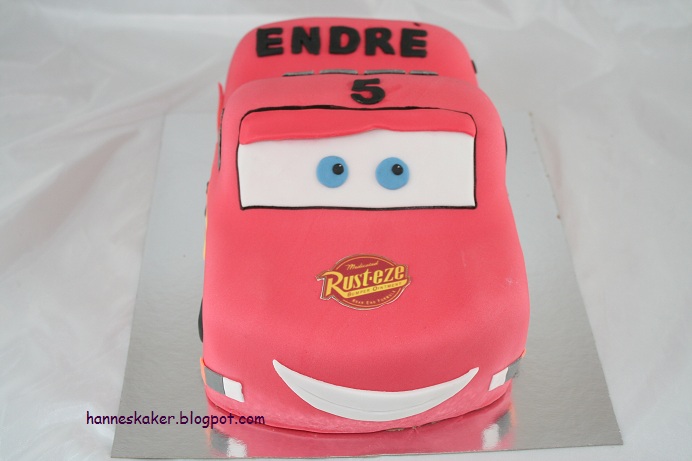 Har laget noen Lynet Mcqueen kake biler nå, er visst den store favoritten til små gutter:-) Vår datter på 3 år snakker litt om den hun å ja, men er nok ikke like helfrelst… I følge henne heter den ikke Lynet Mcqueen men biler Mcqueen… Påståelig er hun også:-)