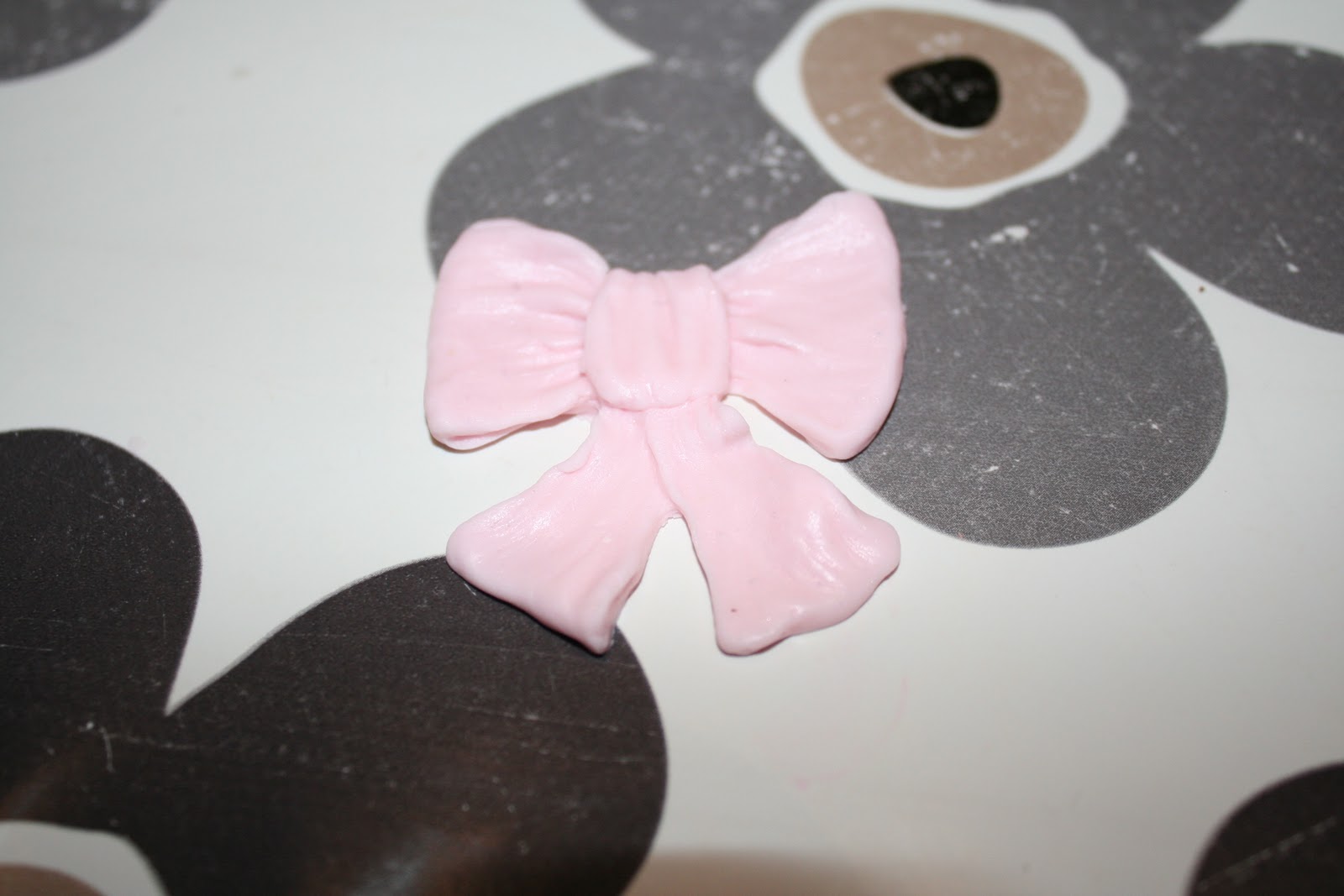 Å vips en helt ferdig sløyfe 🙂 Veldig kjekt med sånne silikonformer, men jeg liker godt å lage pynten med mine egne hender også… Så ikke alt blir så «fabrikklaget». Men til enkelte ting er det veldig greit å ha silikonform 🙂