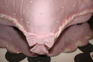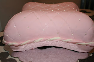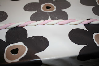 I hvert hjørne ville jeg ha en sløyfe og da er det veldig praktisk med en sånn silikon form. Denne får du kjøpt på www.kakeboksen.no