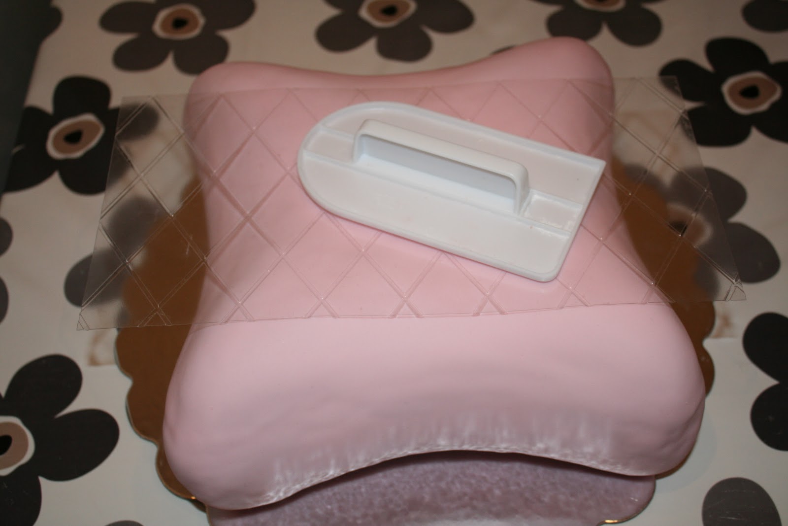 Så mønsteret. Jeg bruker her disse diamant mønster mattene som man kan bl.a. få kjøpt på www.kakeboksen.no. Mere om bruk av disse finner du her. Legg matten oppå og klem ned med en smoother