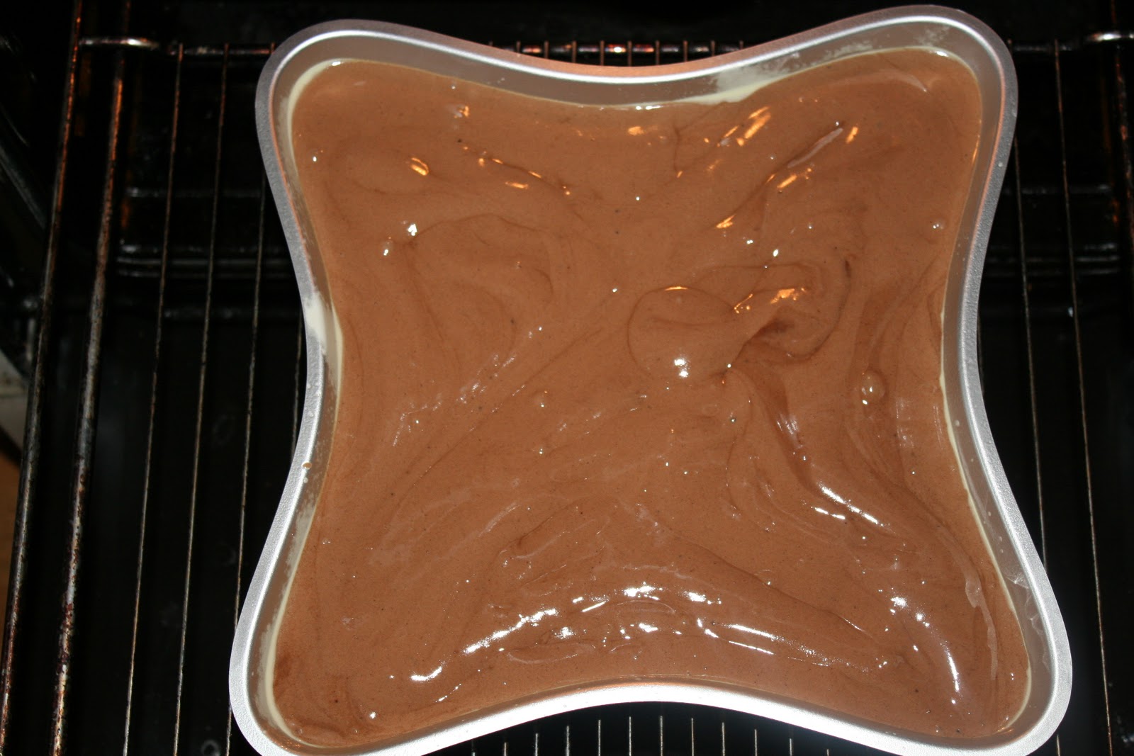 Start med å steke 2 runder med sjokoladekaken. Like greit å gjøre dette dagen før den fylles i og med at steking tar tid og avkjøling tar tid. Å mye enklere å dele en kake som har stått kjølig. Kan også fryses, men personlig synes jeg kakene er best ferske… 😉