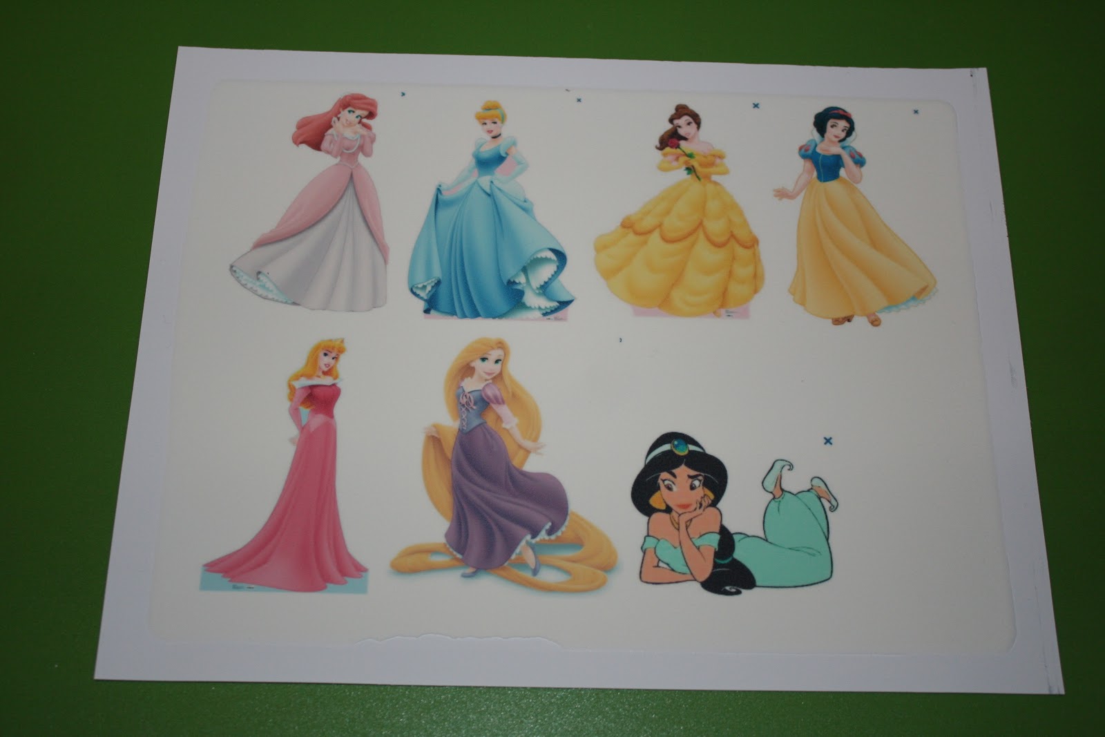 Første metoden så la jeg arket med bildene oppå utkjevlet marsipan, ca 2-3mm tykk. Kan feste det med bitte litt spiselig lim eller vann. Men ikke bruk for mye for da kan fargene gli ut…