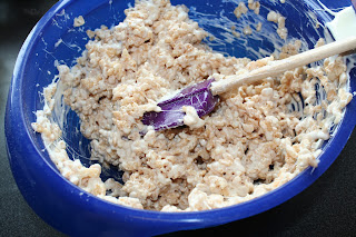 Ha blandingen over Rice krispiesene og rør det godt sammen