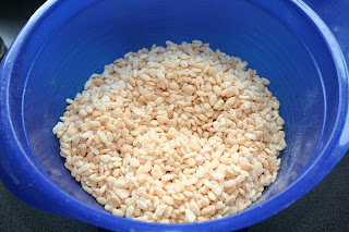 Vei opp Rice krispiesen. Hvis man vil ha den ennå glattere kan man kjøre disse i food prosessor. Men det fungerer bra uten