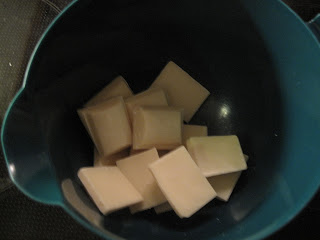 Start med å veie opp hvit sjokolade og smelte denne. Jeg smelter den i micro, men vær forsiktig for hvit sjokolade brennes fort. Jeg brukte 650w og 30 sek om gangen til det var smeltet. Sett til side