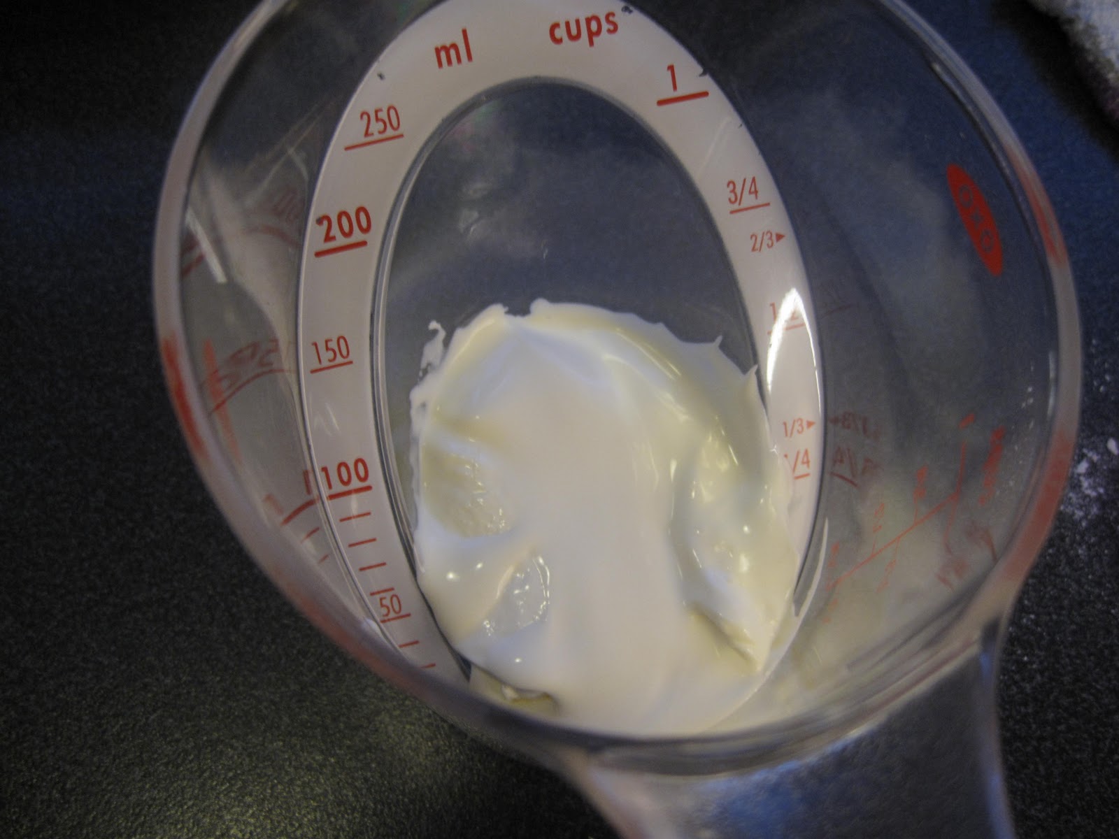 Ha 2 ss creme fraiche eller rømme i et målebeger