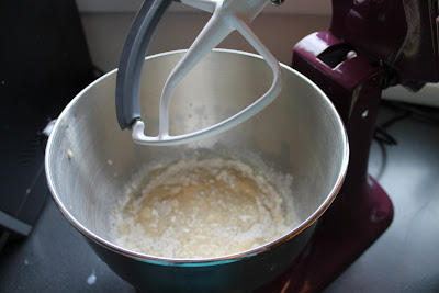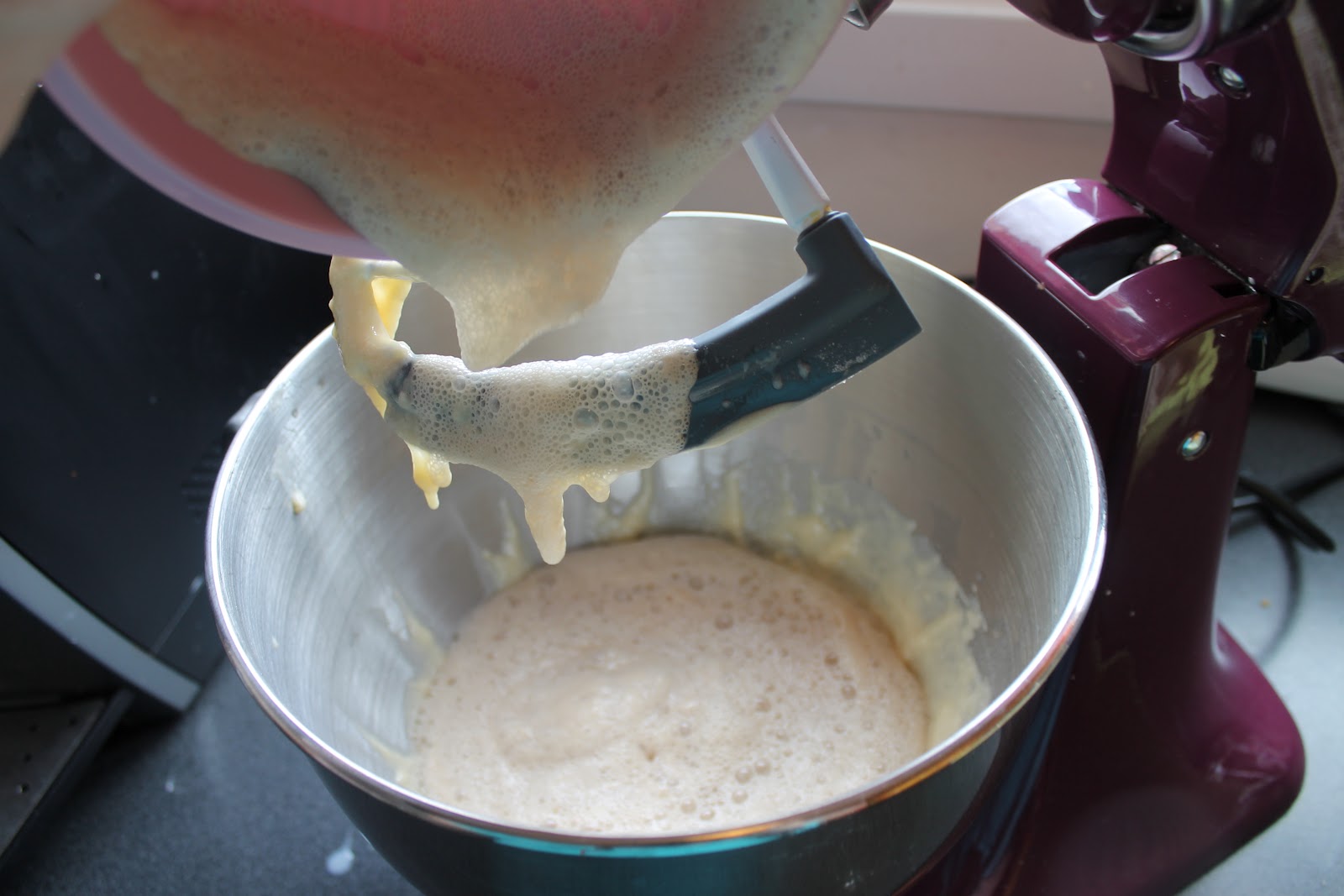 Ha den over i mikserbollen og la den kjøle seg ned til den er fingervarm