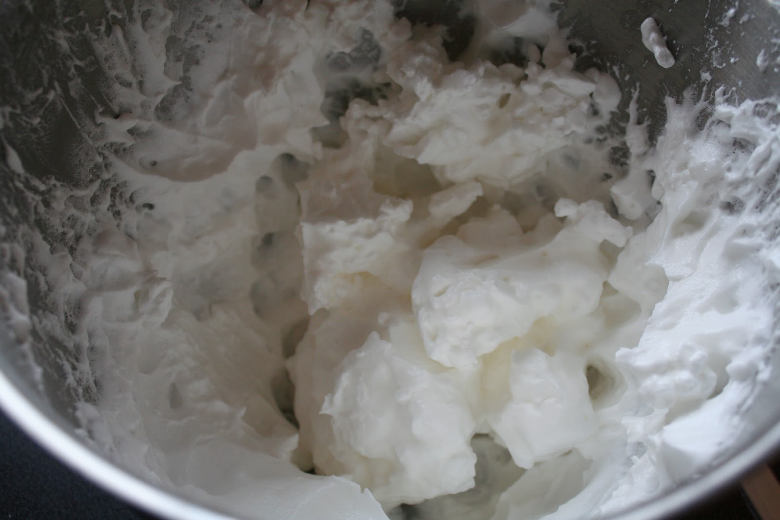 Da er eggehvitene og sukkeret pisket skikkelig stive
