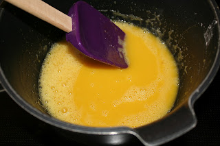 Jeg startet med gulkremen for den skulle stå å avkjøles en stund. Men ikke noe problem å lage makronene først, de står seg 😉 Er såpass liten mengde gulkrem at den avkjøles ganske raskt.