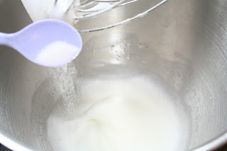 Når det skummer av eggehvitene begynner man å tilsette sukker