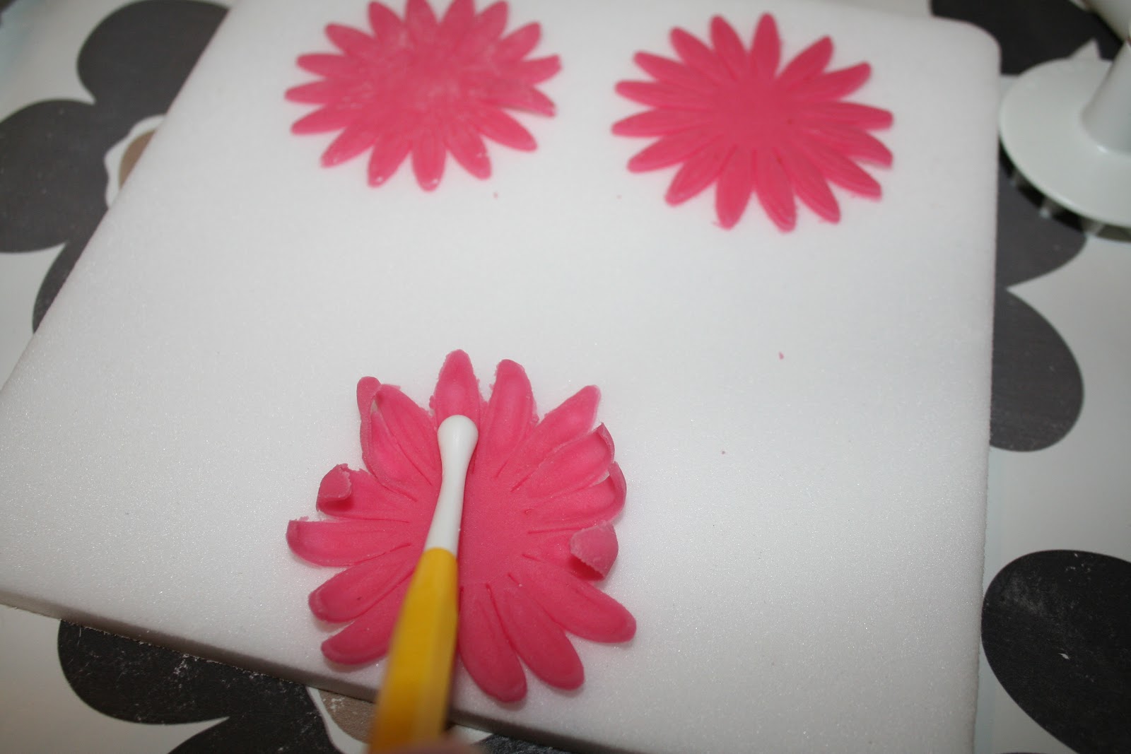 Å ha en gerbera utstikker gjør jobben best da 😉 Så trenger man litt marsipan eller en annen masse etter ønske i ønsket farge. Samt litt brun marsipan til å ha inni blomsten. I forhold til utstyr er en rullepinne eller kjevle et must, en bone tool og en skumgummi matte. Utstyret fåes kjøpt på bl.annet www.kakeboksen.no