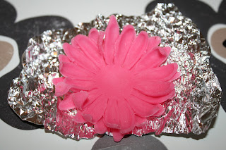 Da har jeg gjort dette på 3 store blomster, jeg trengte bare 2 av de… Men man skal jo lage flere blomster…