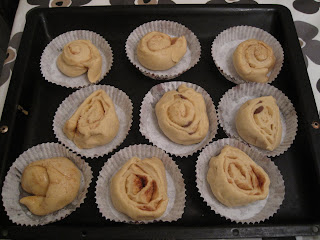 Resten la jeg i kanelsnurre former. Disse har jeg kjøpt på Åhlèns. Traktøren har også. For ikke å snakke om den svenske nettbutikken www.kalasform.se . Legg klede over og hev en liten halvtime