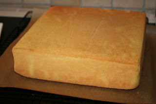 Jeg har en pute form jeg steker i jeg 🙂 Men om du skal skjære den til selv som en pute så sett den kaldt i kjøleskapet eller i fryseren etter den er blitt avkjølt. Pakket inn i plastfolie f.eks. Mye letter å skjære til i rette formen når den er kald. Men sukkerbrød er ikke det letteste å skjære til i forskjellige former da det er så lett og luftig. Enklere med sjokoladekake eller vaniljekake.