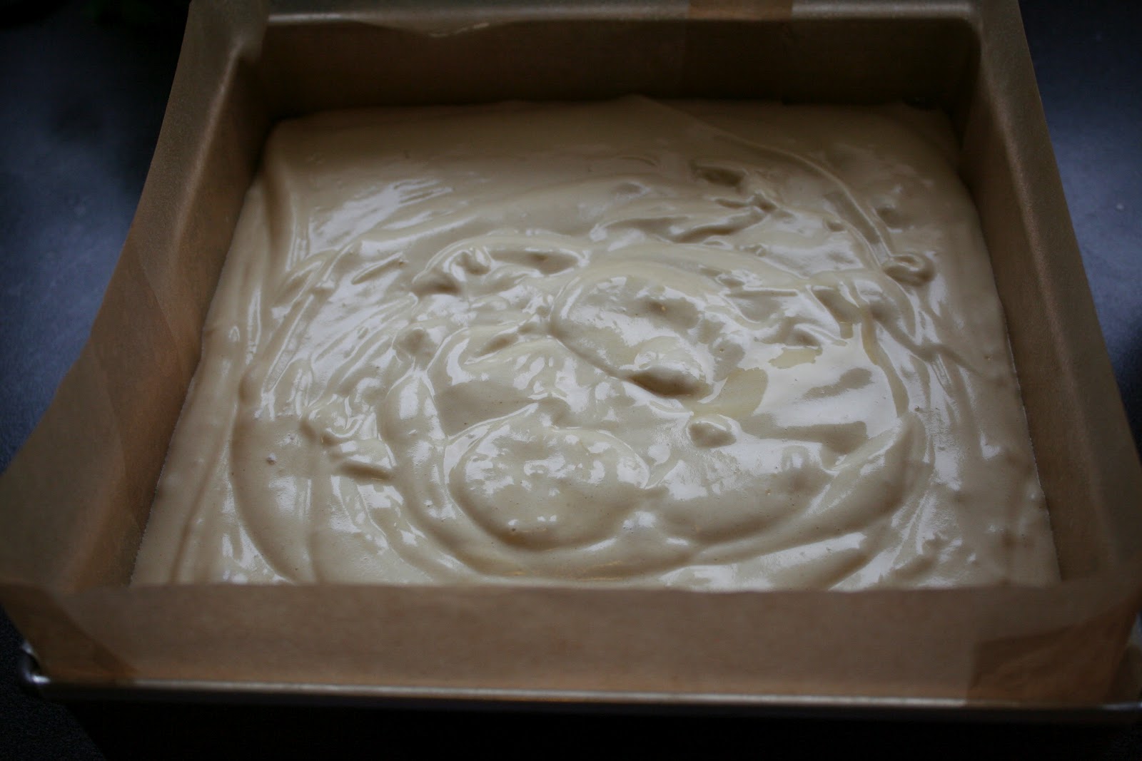 Spray en form med formfett og kle den med bakepapir, spray bakepapiret også. Jeg bruker Pals sitt formfett det er supert! La bakepapiret gå over kanten på formen så har kaken en vegg å vokse på 😉