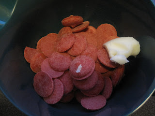 Tilsett Philadelfia osten, hvis du bruker food prosessoren så ikke kjør den lenge for da blir det en seig grøt. Bland det bare såvidt sammen, eller bruk en slikkepott å bland det inn med heller