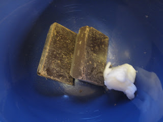 Å så brukte jeg 55 % Odense mørk sjokolade med 1 ts Flott matfett (ca 100g). Jeg smelter sjokoladen i micro, eller du kan gjøre det i en skål over en kjele med kokende vann (vannbad). I micro setter jeg watt styrken litt ned til middels varme ca og rører hvert 30 sek. Hvit sjokolade tåler mindre enn vanlig så den må passes godt på under smelting. Bruker du pulverfarge blandes denne i til ønsket farge når sjokoladen er smeltet