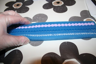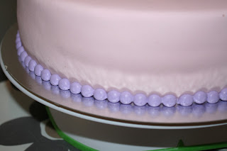 Legg på perleborden, med den flate siden inn mot kaken . Kan pensle borden med litt glanspulver. Jeg liker godt Rainbow dust