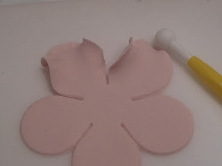 Begynn innerst på bladet med balltool og dra den helt ut til midten. Vær litt lett på hånden til å begynne med så marsipanen ikke revner