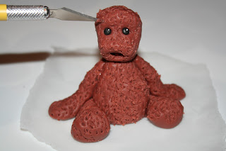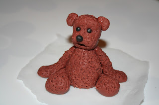 Bamser i marsipan eller fondant eller lignende er jo så fine og de finnes i mange varianter. Denne rufsete karen synes jeg ble søt. Å perfekt på en Valentine kake til en man er glad i <3