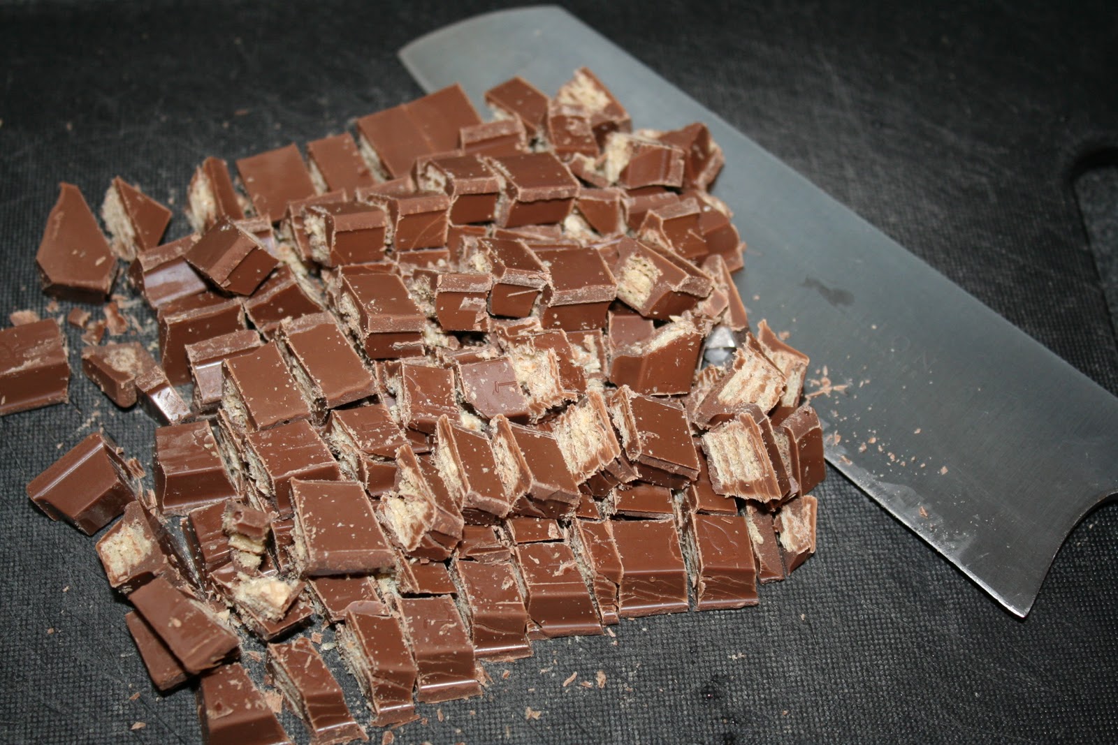 Brekk opp melkesjokolade og mørk sjokolade i biter. Jeg brukte 70% mørk sjokolade. Ha det oppi smør og sirup blandingen. La smelte på lav varme