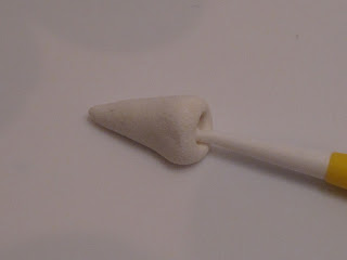Så luen. Stikk en balltool inni ene enden og gjør åpningen større så den passer til hodet til smurfen