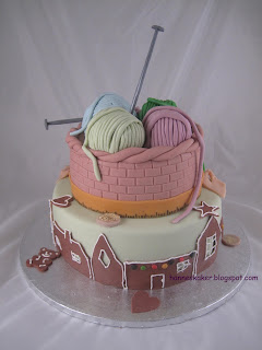 Denne kaken laget jeg til en godt voksen dame som bestandig har vært glad i å bake, spesielt til jul. Laget mye pepperkakehus til barnebarn og barnhage. Å bestandig glad i å strikke. Denne utfordringen måtte jeg bare ta… En dame som liker det samme som meg må jo få en kake til seg selv engang 🙂 Sånn ble resultatet…