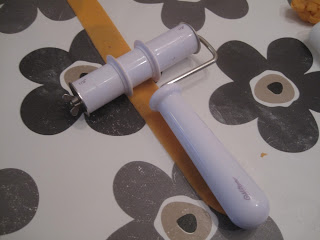 Målbåndet laget jeg ved å kjevle ut marsipan og skjære ut i passe bredde