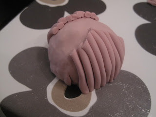 Klem marsipanen inntil cake balls`en, er ikke så farlig om det ikke blir jevnt for den skal dekkes med «garn»
