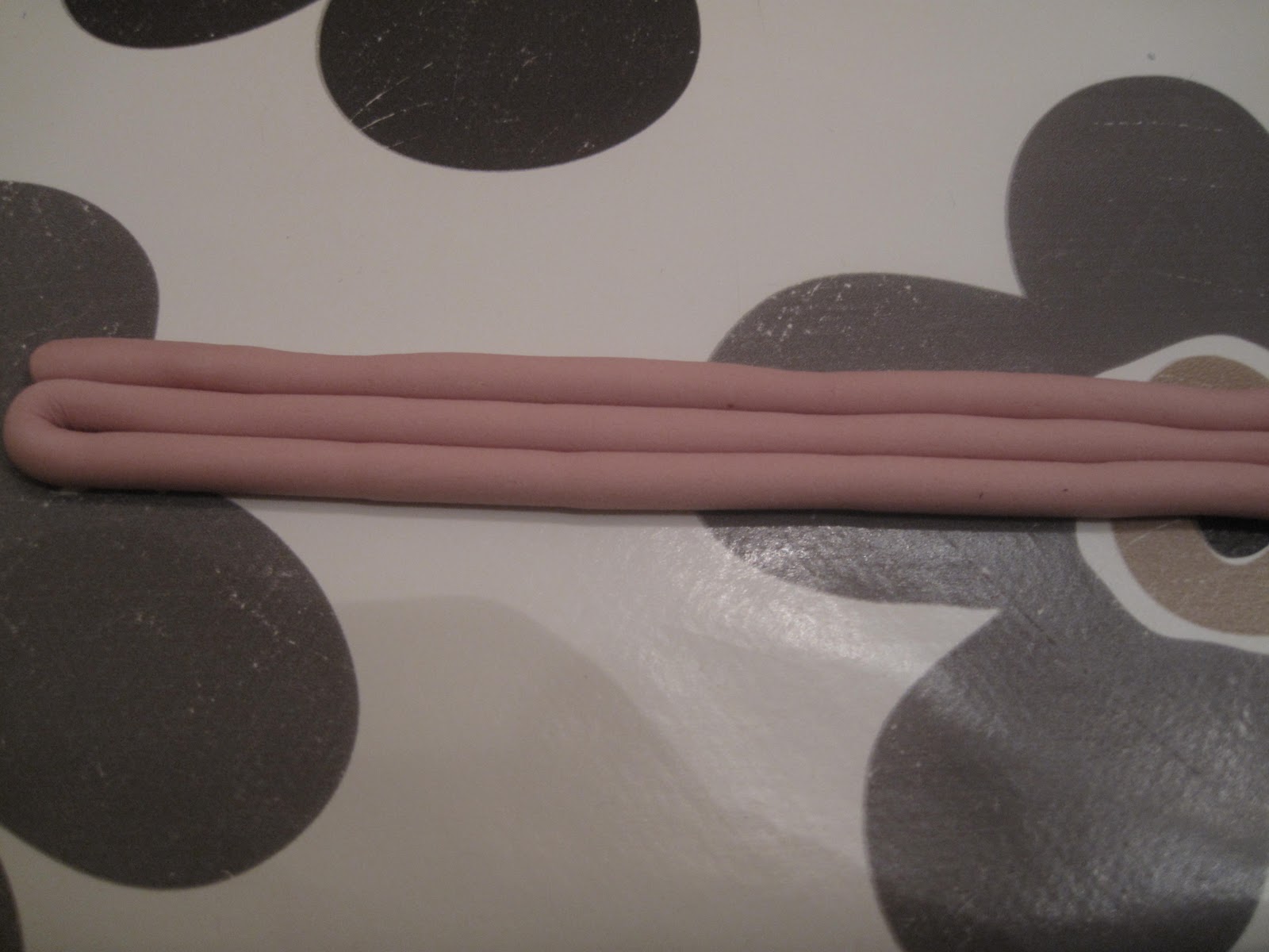 Trillet 2 pølser som jeg tvinnet sammen for å ha som kant oppå kaken