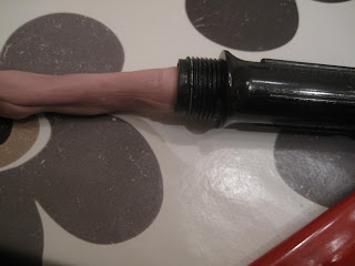 For å lage «trådene» kan man enten bruke en sugargun som denne. Legg inni marsipanen sånn og klem ut… Eller man kan trille pølser