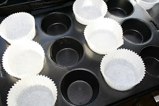 Fyll de halvfulle. De observante leserne mine ser at jeg fikk 13 cupcakes utav den her oppskriften 🙂 6 store og 7 vanlig størrelse