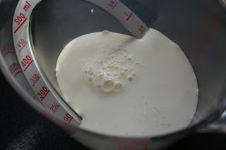 Mål opp melk eller fløte, jeg brukte halvt om halvt ca av begge