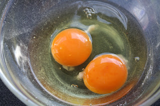 I mens maskinen går har du to store egg i en bolle, har du små egg tar du 3