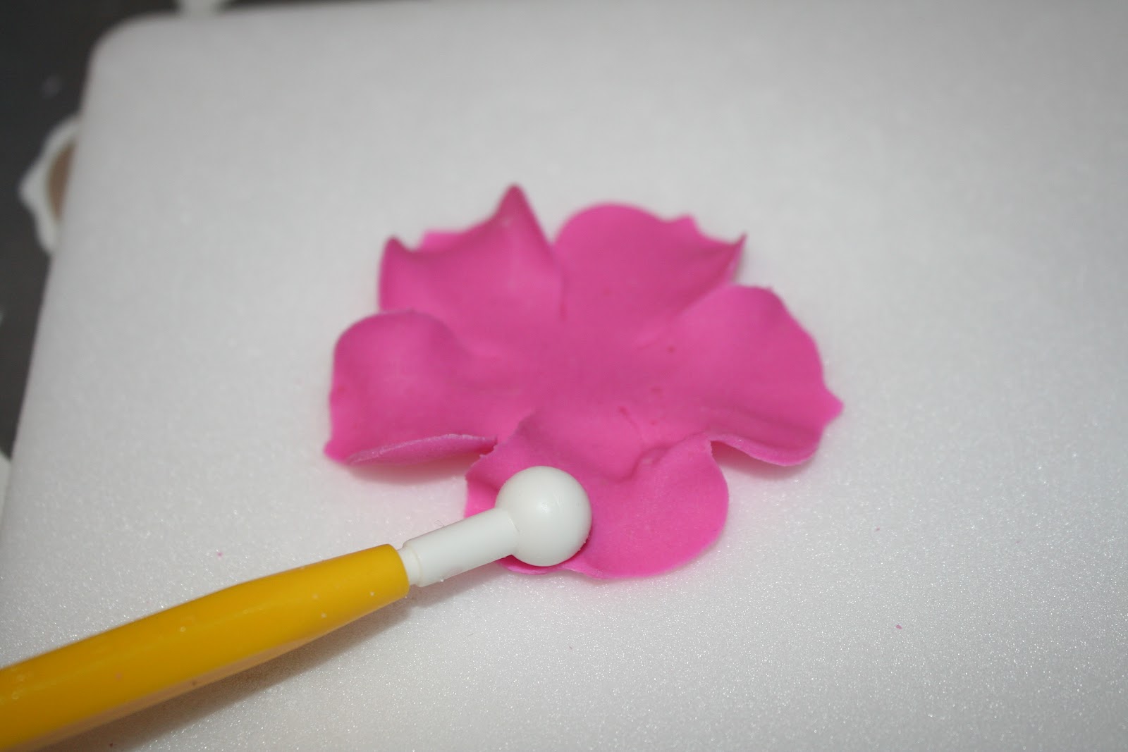 Legg blomsten på en skumgummi matte og tynn ut kantene med en balltool