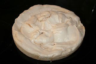 Legg så marengsen oppå, jeg renskjærte den litt på toppen så den ble flatere
